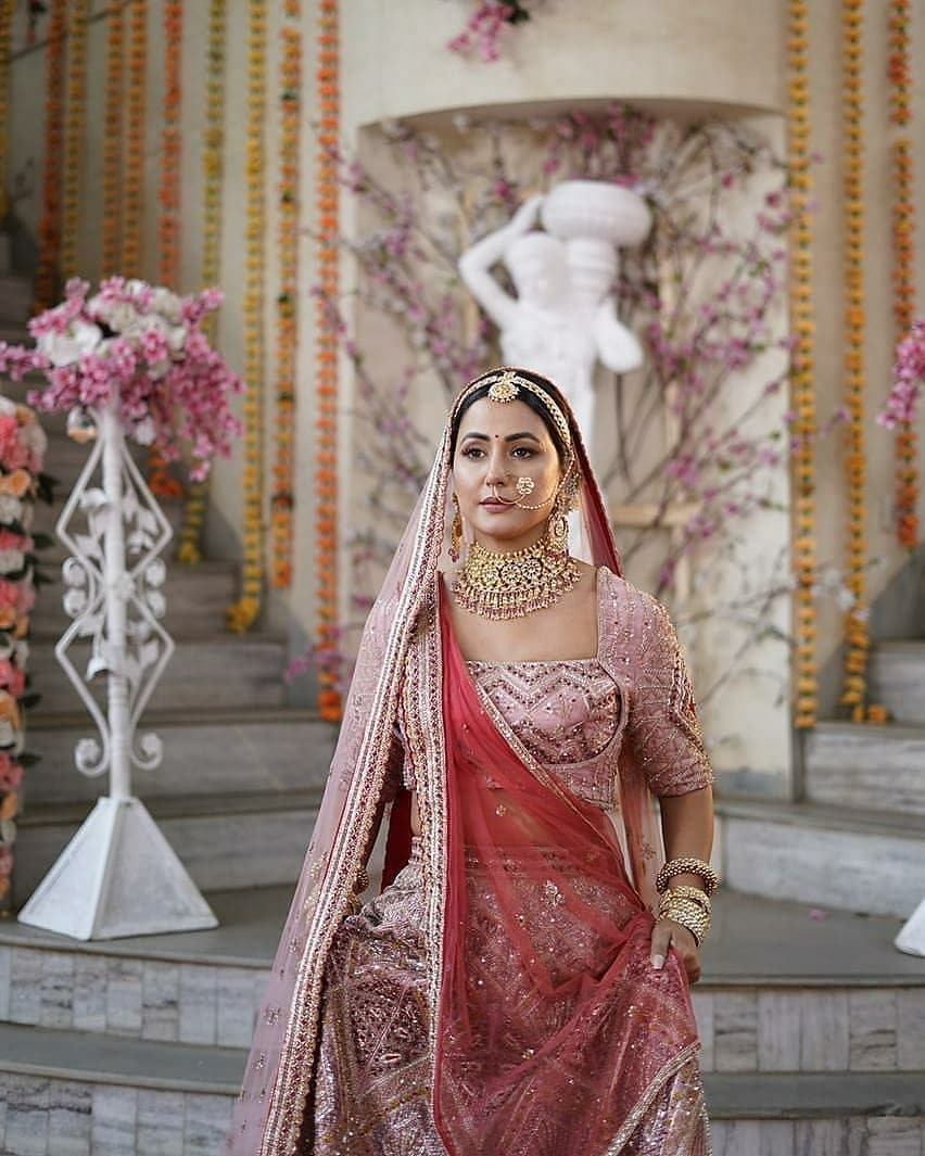 The photographs have Hina wanting beautiful in a petal pink lehenga from Bindani – By Jigar & Nikita.
